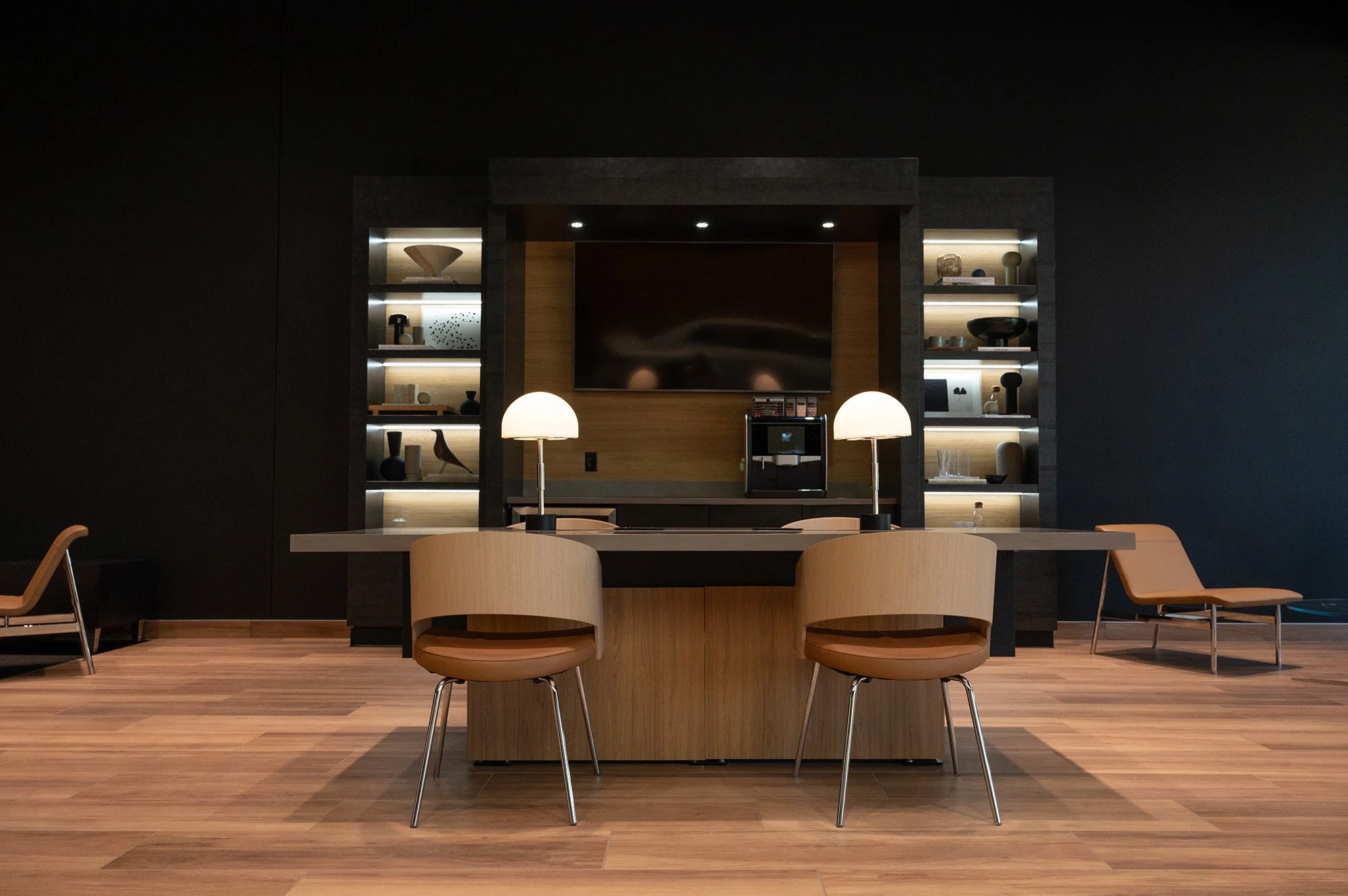 Earnhardt Genesis of North Scottsdale Meeting Space ● Earnhardt Genesis of Scottsdale provides a cozy setting for customers to explore the latest Genesis models and engage in conversations with the dealership's staff about their automotive requirements within a small meeting room. ● Photo Credit: Earnhardt Auto Centers